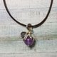 .純銀、紫水晶、拉長石、特殊隱形鋼扣頭仿皮繩。