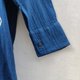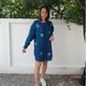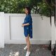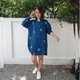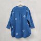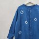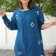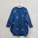 圓領長袖木扣靛藍紮染上衣,適合夏季。可愛的寬鬆設計,前短後長的襯衫,涼爽的靛藍染色圖案。