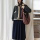 【深灰毛呢與波點結合,內里絎棉內襯帶來溫度】