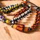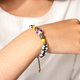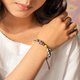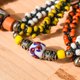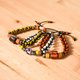 本產品以圖騰琉璃珠搭配結合現代仿古五金、線材等素材製成手環,可配搭現代衣物或原住民傳統服裝等,充分展現個人品味
