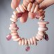 嚴選珍稀**粉紅蛋白石**(澳寶、歐泊),磨製隨型扁珠,寶石**白、粉色彩交織流淌**,溫潤細膩。