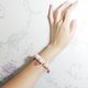 鍊身飾以粉碧璽**多寶(壽桃-健康,葉-一葉成功,如意-如人所意,金魚-金玉滿堂,熱帶魚-如魚得水)**,有**所願皆成**的美好寓意,並寶石件件色彩明亮、火彩閃耀,整體紅粉色時尚亮麗,大器富貴之情不言而喻。