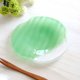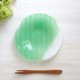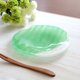- お花の形をモチーフにした、緑色の爽やかなガラスの小皿です。お花の形に整えた透明なガラスに色付けし焼き上げました。柔らかな質感の中に透明感もあり、涼やかな一枚です。