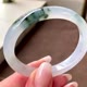 冰種 天然翡翠 緬甸 A玉 玉鐲 • 冰種飄花翡翠貴妃鐲 - 手鍊/手環 - 玉石 白色