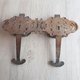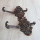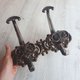 - Old-fashioned metal wall hanger. Made in USSR. Retro hooks wall home decor. Circa 1970s.
