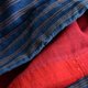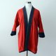 美麗的靛藍染色與紅色襯裡形成美妙對比的和服夾克(農夫)。 珍貴的日本複古與藝術刺子。