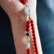 硃砂 平安扣 五色線 手機鍊 辟邪聖物 翡翠 黃水晶 青金石 - 手機掛繩/背帶 - 水晶 紅色