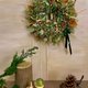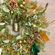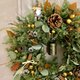 金色松果、乾燥果實與永生雪松交錯在一起,