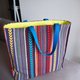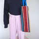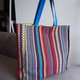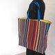 カラフルなエスニック生地と帆布生地を使ったしっかりとした大きめのトートバッグ。