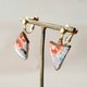 オレンジや水色の花柄やリーフ柄がちらりと見える上品な陶片のイヤリングです。