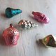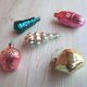 Soviet vintage Christmas Tree glass ornaments. New Year decorations. Made in USSR. Circa 1970s. Xmas decor toys. Set of five glass ornaments.