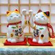 兩隻招財貓都高高舉起右爪✋,象徵「金運招徠」(Kin’un Shōrai)