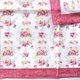 Delicate vintage handkerchief featuring romantic pink and yellow roses framed in soft gray scroll motifs. The fabric is finely woven and light, finished with a detailed pink baroque-style border. Feminine, elegant, and timeless — a lovely collector’s piece or stylish accessory.