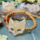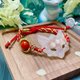 手繩本身以玉線搭配金銀線編織而成,展現出瑰麗的光澤,並搭配了白瑪瑙與南紅瑪瑙圓珠,展示出活潑多彩的視覺效果。與狐狸面具相結合的蟠龍編織元素,讓整體設計顯得更具層次感,彷彿預告著即將來臨的盛典,無論是佩戴或作為裝飾都極具吸引力。
