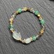 金髮晶約7~8mm、碧璽綠髮晶約7~8mm 、綠草莓晶約7~8mm、切面白水晶車輪珠6mm、不定型天河石、螢石龍龜 、黃銅配件、進口彈性線