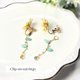 花瓣內蘊含細緻的亮粉,在光線照射下能低調地閃耀。將容易顯得稚氣的向日葵圖案,以纖細的線條和透明感的色調呈現,打造出適合成熟女性的優雅飾品。搖曳的葉片與露珠,更添一抹清涼感。