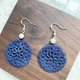 **這款手工藍色圓花耳環將經典的梭織技術與時尚元素完美結合。深藍色調為您的穿搭增添了一抹優雅和神秘感。每一朵圓花都經過精心製作,並以珍珠作為亮點,使耳環更加獨特和迷人。**
