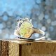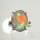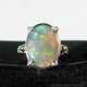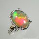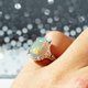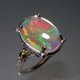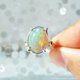 光の角度によって様々な表情を見せるオパールを、18金のボールと唐草の透かし模様で飾りました。