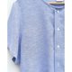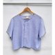 Crew neck, short sleeves, with a full-length button placket at the front.