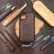 我們所有產品可看見的邊緣都會經過處理。先經過基本的修正打磨,再反覆地上色及拋光,直到光滑平整後打上一層蠟作保護。單是這個過程幾乎佔上整個製作時間的三分之一。顏色方面,我們一般都是選擇與主體(封面)皮革顏色最貼近的作為預設。