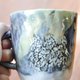 這只馬克杯以瓷土手捏成型,透過高溫燒成展現出堅固與耐用的特性,能安全盛水,成為日常飲用的理想選擇。善用釉藥的特性,繪出夢幻的極光森林雪景,杯身以深藍與極光綠綠色與白色為基底,局部流動的深淺交疊變幻多端,呈現魔幻森林。宛如天空舞動著極光的森林雪景般渲染,帶出自然侘寂的手感美學。