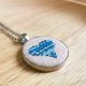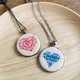 小巧精緻的金屬底托,繡上大大的愛心圖樣,充滿質感,簡單卻充滿個性的小項鍊,是 CaCa 的心頭好。