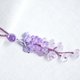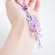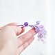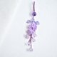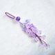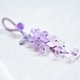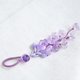 手工編制淺紫色線繩,按照由深色到淺色錯落給花朵排序,搭配紫水晶圓珠製作珠扣。搭配手工編制淺紫色小葉子,是一款非常耗時的小吊飾,幸而成品很美麗。天然紫水晶帶有棉絮和紋裂,介意勿拍!