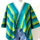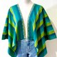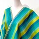 寬版開襟無扣罩衫外套、華麗白金色織紋、藍綠色系神秘異國風、前短後長設計