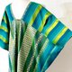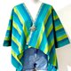藍綠條紋間隱約閃現的金色,讓膚色顯得更加白皙透亮。整體簡潔卻不失華麗,只需搭配小可愛、短褲與布鞋,就能穿出輕盈飄逸的氛圍。入秋時,換上深色緊身上衣作為內搭,下身配合身褲裝與高跟長靴,立刻轉換成帶有帥氣氣息的女性姿態。