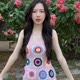 女士手工鉤針祖母方格吊帶裙 - 波西米亞風