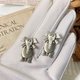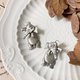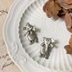 【西洋古董飾品】JJ 立體層次前後大象 頭可動 互動式 耳針耳環 - 耳環/耳夾/耳骨夾 - 貴金屬 銀色