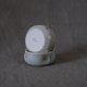 瓷土拉坯製成,質感層次的灰綠色,薄薄浸釉時呈現粉灰綠微亮色澤,釉厚處則是更顯光澤感的琥珀綠。