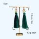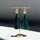 深いグリーンのタッセルが瑞々しさを、柔らかなピンクのビーズが花の複雑で美しい表情を表現しました。エキゾチックで印象的な耳元を演出します。