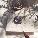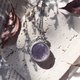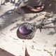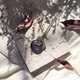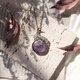 神秘的魅紫色鋰雲母,在燈光下光暈流轉,如同能蠱惑人心的黯月,綴以玫瑰纏繞外圈,垂墜下一片葉子增添柔美感。