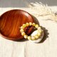 商品賞析:金絞如晨光初起、白花似雲氣輕遊,絲絲螢光在珠心悄然綻放,彷彿把天光流動、雲海翻騰都收藏於腕間;一顆顆圓潤如月、暖若琥珀燭火,把人心照得柔和明亮,佩之如攜一束安定的金色微光同行——行走之處皆有和氣自生、好運自隨。金白交織的紋理像自然的筆觸,在肌膚間緩緩描出靜謐與富貴的韻味,低調卻珍稀,內斂卻生輝;每一次抬手都是光的呼吸、心的回聲,溫柔而堅定,彷彿提醒著佩戴者:心若澄明,萬事皆順;光若在握,好運自來...