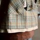 利用布料對比與拼接線條創造視覺層次,結合格紋與素面布料,讓整體造型更有亮點,同時保有日常實穿感。