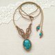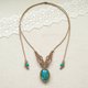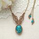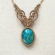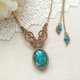 ◇ 尺寸:美國銅花藍寶24x18mm/綠松石圓珠5mm/鍊長約80cm,可自由調整長度