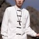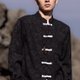 中式復古 撞色盤扣唐裝 中國風長袖襯衫 - 男襯衫/休閒襯衫 - 其他材質 黑色