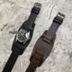 • 軍人風皮托款式真皮牛皮男士腕錶帶配不鏽鋼銀扣