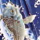 橙色緞帶與鯉魚攀瀑圖案相映成趣。