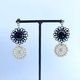 These striking two-tone earrings in black and ecru feature thread motifs woven with beads that gently sway.