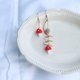 鉤織 不對稱 小紅蘑菇 金屬扭紋配件 耳環