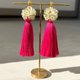 這款耳飾以「濱百合」(Nerine) 為設計靈感。透過散發寶石般光澤的透明花瓣零件,與鮮豔的粉紅流蘇,巧妙捕捉了濱百合在光線照射下閃耀動人的神韻。為了展現出既嬌媚又帶著幾分堅毅的風采,我們將輕柔搖曳的流蘇與溫婉的花朵表情相互結合,打造出能點亮臉龐的亮眼設計。