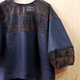 **【 落肩剪接澎袖上衣/ 藍咖幾何 】**