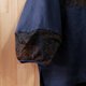 選用些微挺度的咖藍幾何蕾絲拼接深藍棉麻