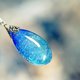 春まだ浅い季節に、青い雪解けのしずくが光る。そんなイメージでお作りした、ふっくらとした立体的なしずくタイプペンダントです。淡いブルー系の色合いに煌く優しいラメ、そして暗闇では神秘的な光を放ちます。胸元にキラリと光る素敵な逸品に仕上がりました。
