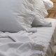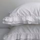 - Pillowcase with Ruffles White, 100% Cotton Smooth Sateen, Envelope closure Details: • This listing includes one pillowcase on three sides with ruffles. • Soft Sateen, 100% Natural Cotton. • OEKO-TEX certified fabric (free of harmful chemicals) • Envelope closure on one side. • Color in the picture - white.