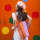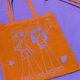夢幻橙紫拼色印花包包,可在開心出遊的女孩/可愛靈動的 LOGO 兩面隨心切換。