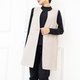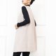 無領單扣長版毛料背心 / 杏色 透氣舒適,秋冬皆宜
