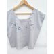 灰色亞麻 短版落肩方領上衣 正面手工刺繡 材質:亞麻 手工刺繡 **預計需時 7-14 天發貨